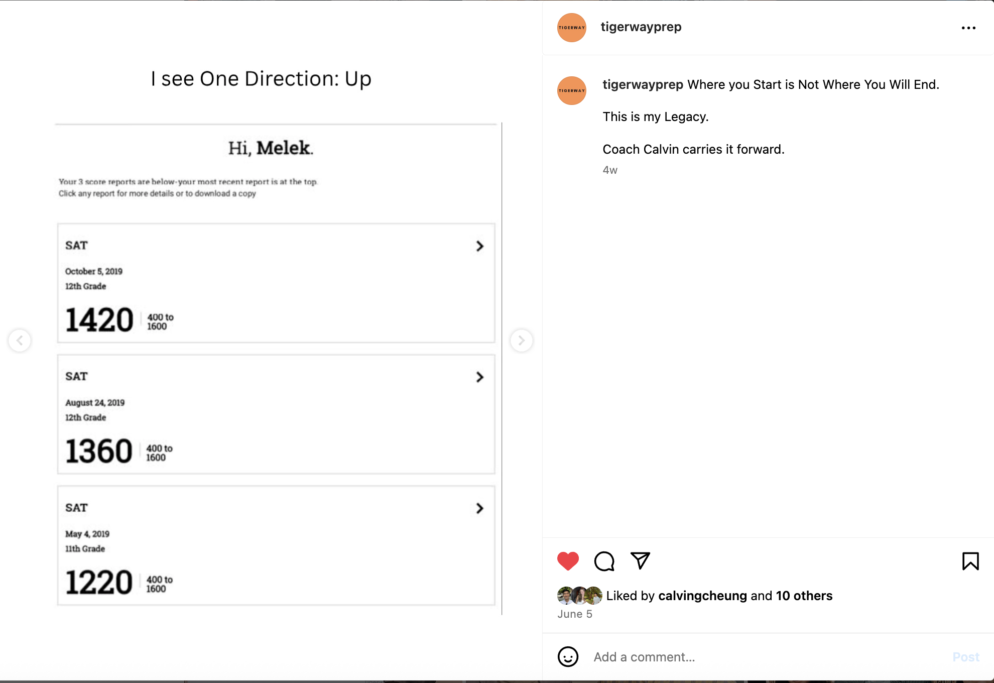 “I really liked that Tigerway provided a supportive and hard working community where everyone was focused on one goal: getting better on the SAT. ”